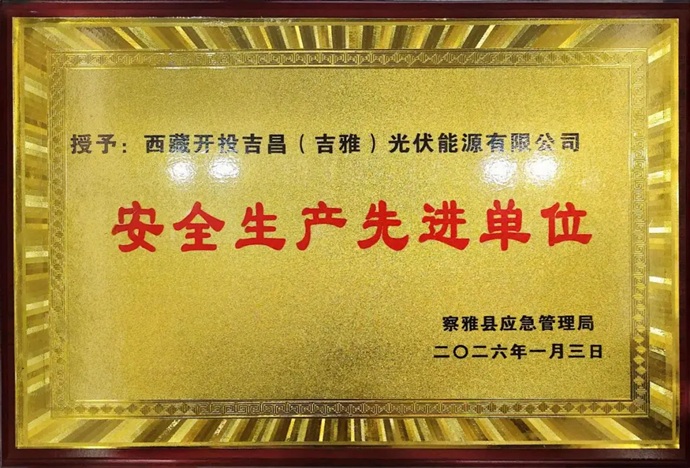 近日,西藏開投吉昌(吉雅)光伏能源公司被察雅縣應(yīng)急管理局授予安全生產(chǎn)先進(jìn)單位榮譽(yù)稱號(hào)。 此項(xiàng)榮譽(yù)的獲得,是地方政府對(duì)公司安全